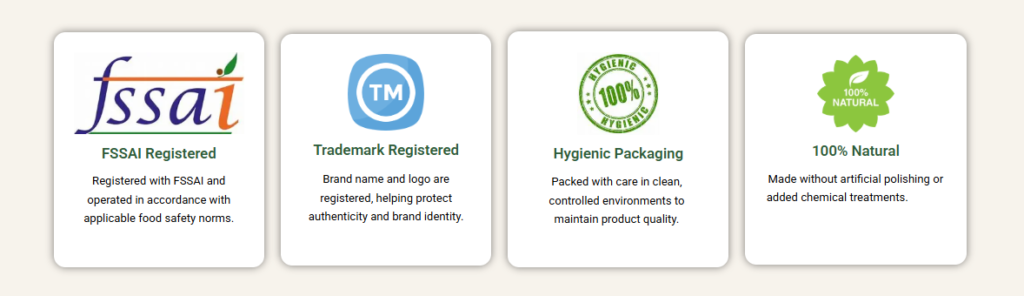 Every product is carefully sourced, processed, and packed to meet food safety and purity standards.