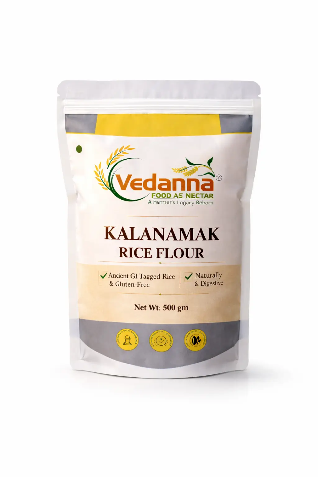 Vedanna Kalanamak Rice Flour is a finely ground form of rice traditionally used in Indian kitchens for a variety of recipes. Vedanna brings you premium-quality Rice Powder made from carefully selected rice grains and processed to ensure purity and smooth texture.