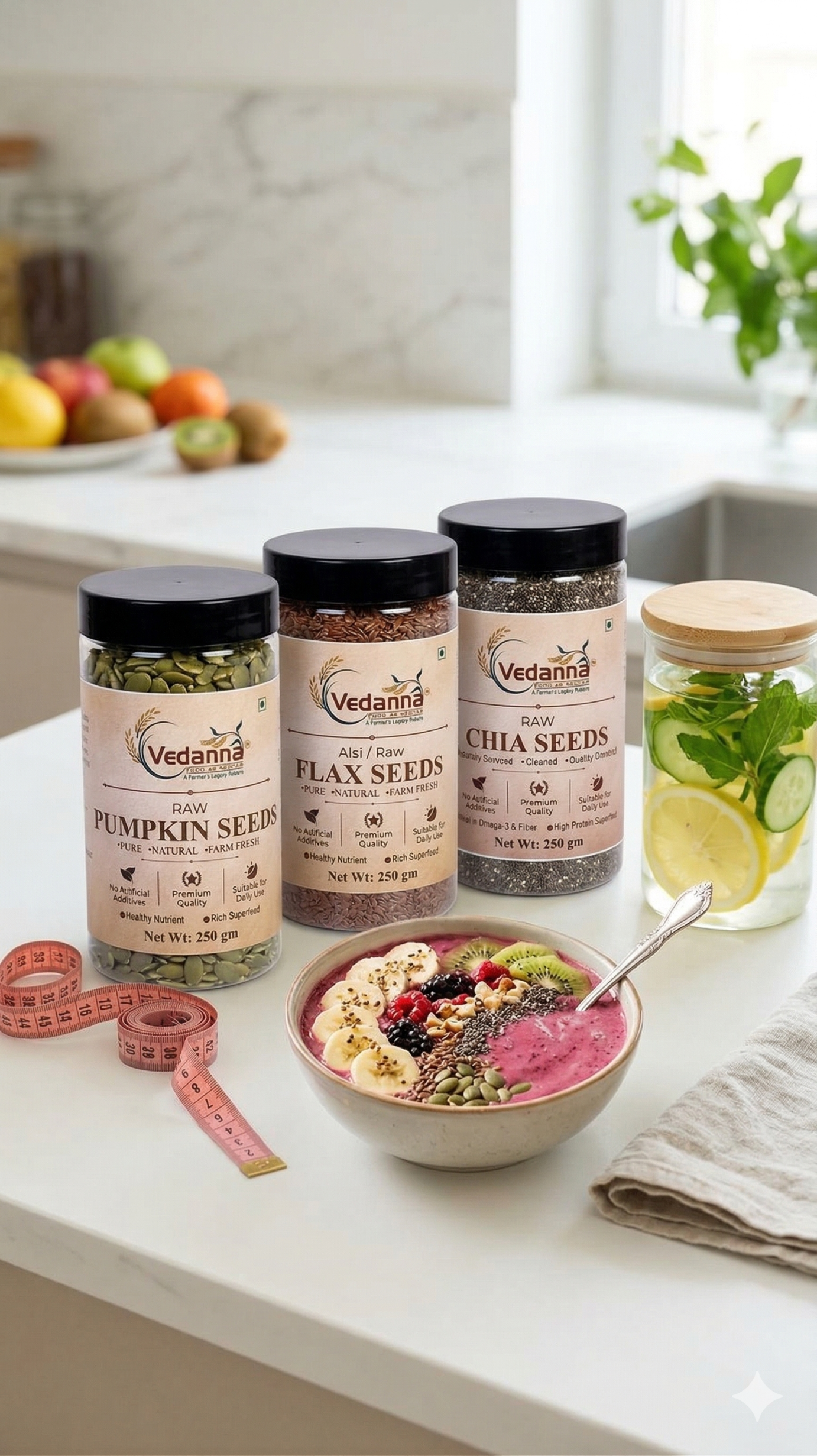 Order Vedanna Weight Loss Seeds Combo today — India’s favourite seeds combo pack for weight management, digestion, and overall health!